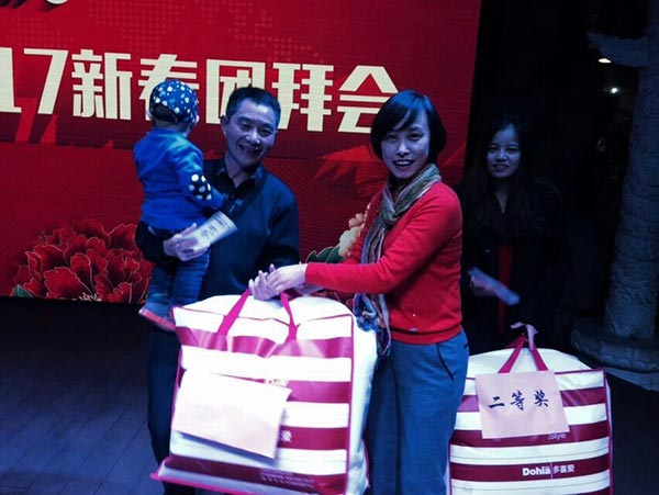 在一片歡呼聲中,此次新春團(tuán)拜會最受歡迎的抽獎環(huán)節(jié)隆重開啟。今年團(tuán)拜會共設(shè)置一至8等獎、幸運(yùn)獎、特別獎等獎項(xiàng),獎品豐富、中獎率高。近一個小時的抽獎環(huán)節(jié),每一次的開獎伴隨著幸運(yùn),各大獎項(xiàng)已花落有家,中獎?wù)弑е疫\(yùn)而歸。
