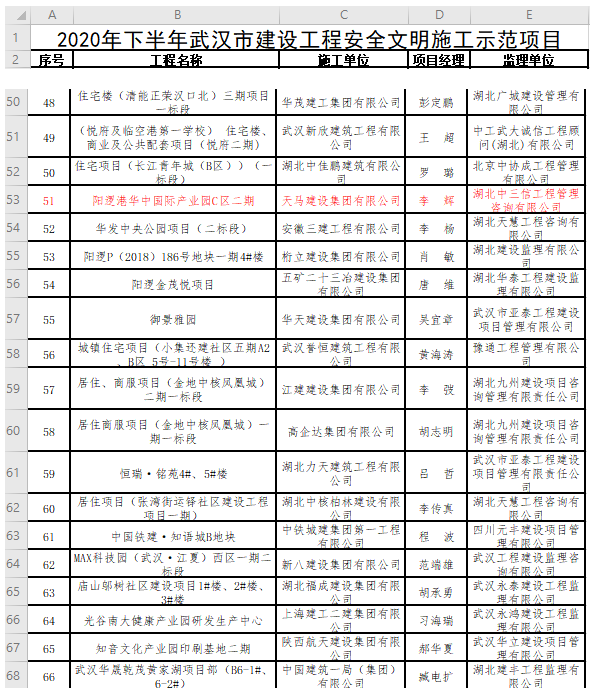 榮獲2020年下半年武漢市建設(shè)工程安全文明施工示范項目