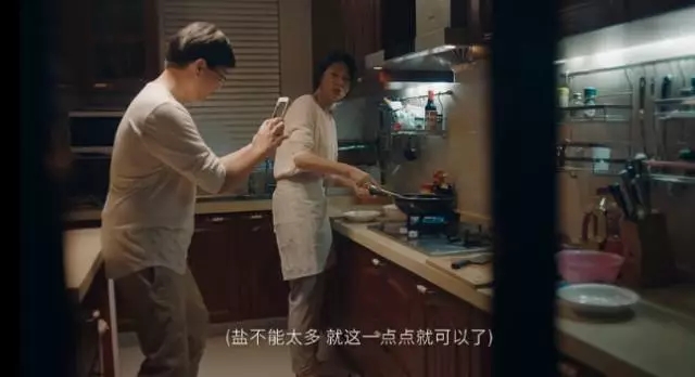 媽媽一邊炒菜一邊口述步驟,爸爸則負責錄視頻發(fā)消息。