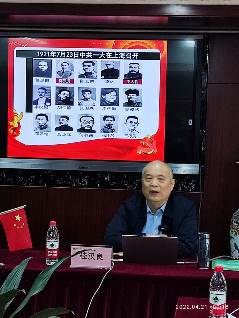 桂漢良教授長期從事馬克思主義基本理論的教學和科研工作,多次作為省、市宣講團成員參與中央和省、市委黨史精神的宣講。桂教授今天宣講的專題黨課通過對黨的一大到十九大歷次黨代會的時代背景、主要特點、經(jīng)驗教訓和重大意義的回望,生動再現(xiàn)了黨從播下革命火種的小小紅船到領(lǐng)航復興偉業(yè)的巍巍巨輪的光輝歷程,全面而深刻地回答了“過去我們?yōu)槭裁茨軌虺晒?、未來我們怎樣才能繼續(xù)成功”的時代問題和“中國共產(chǎn)黨是什么、要干什么”的根本問題,對廣大黨員干部滿懷豪情砥礪前行,以優(yōu)異成績迎接黨的二十大勝利召開具有以史為鑒、開創(chuàng)未來的啟發(fā)和引領(lǐng)作用。